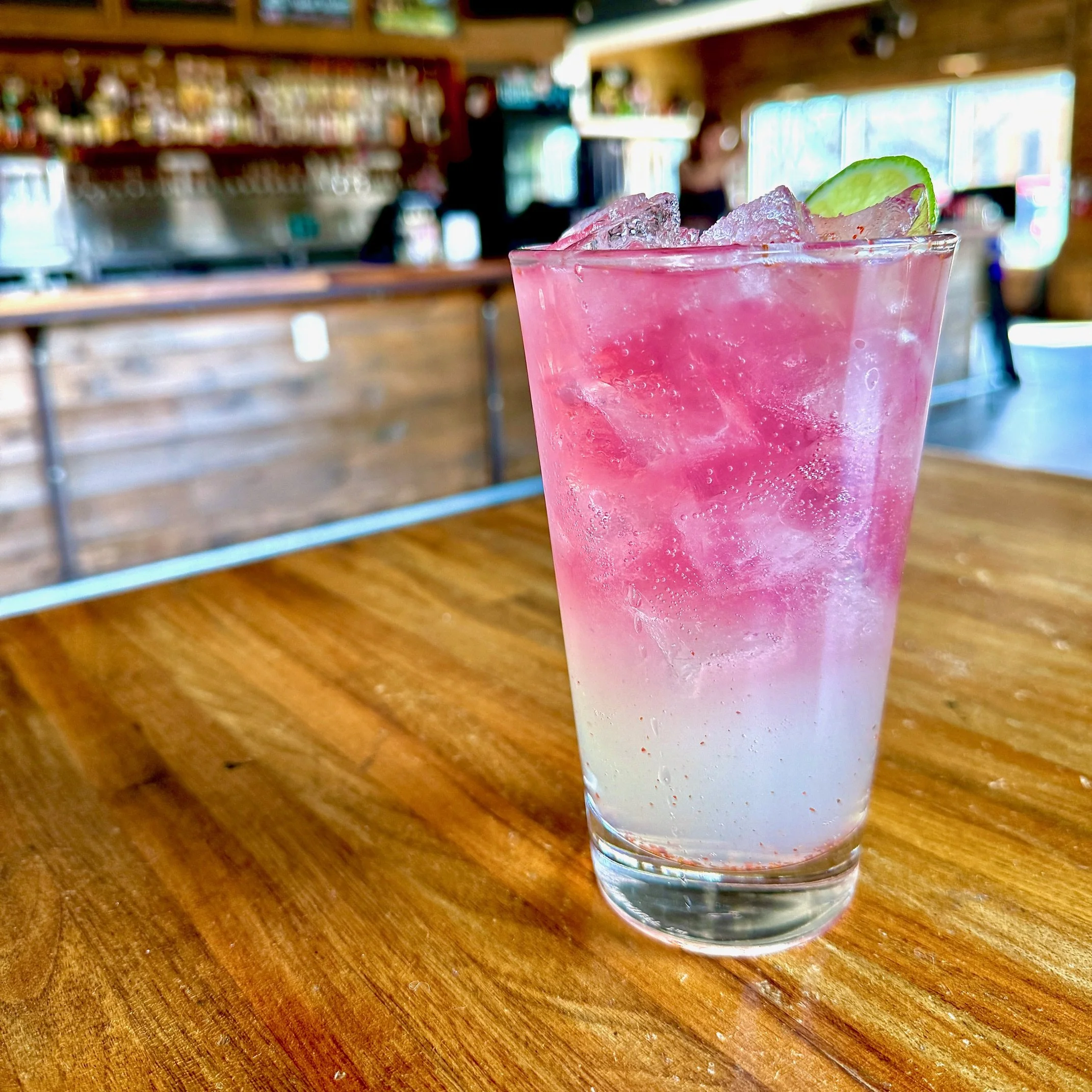 Loca Loka Blanco Tequila / Cointreau / Simple Syrup / Lime Juice / Tajin / Lady Bird Cactus Pear Soda