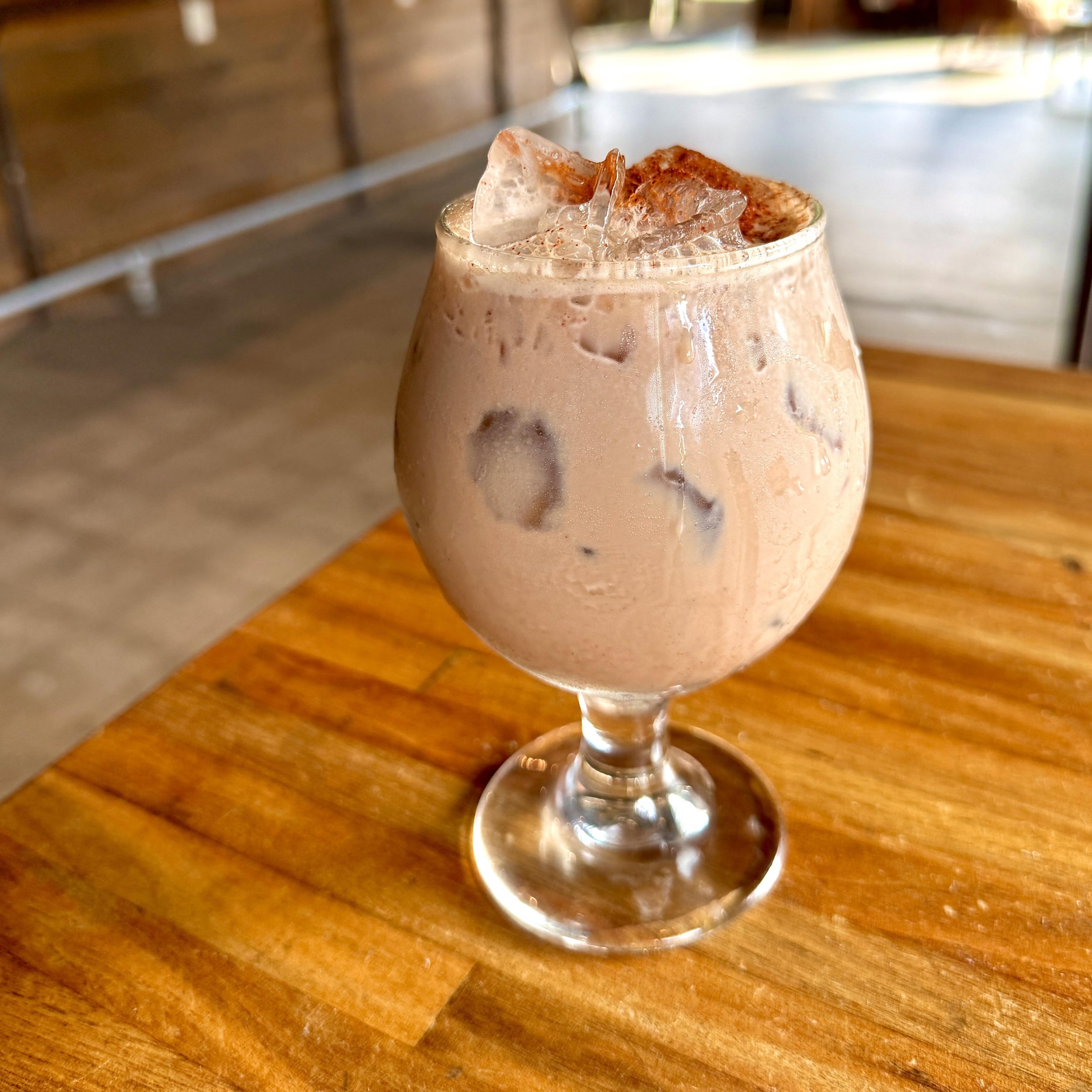 Ghost Spicy Blanco Tequila / Chocolat Triple Chocolate Liqueur / Chocolat White Chocolate Liquere / Chocolate Syrup / Oat Milk / Aztec Chocolate Bitters / Cinnamon / Chili Powder